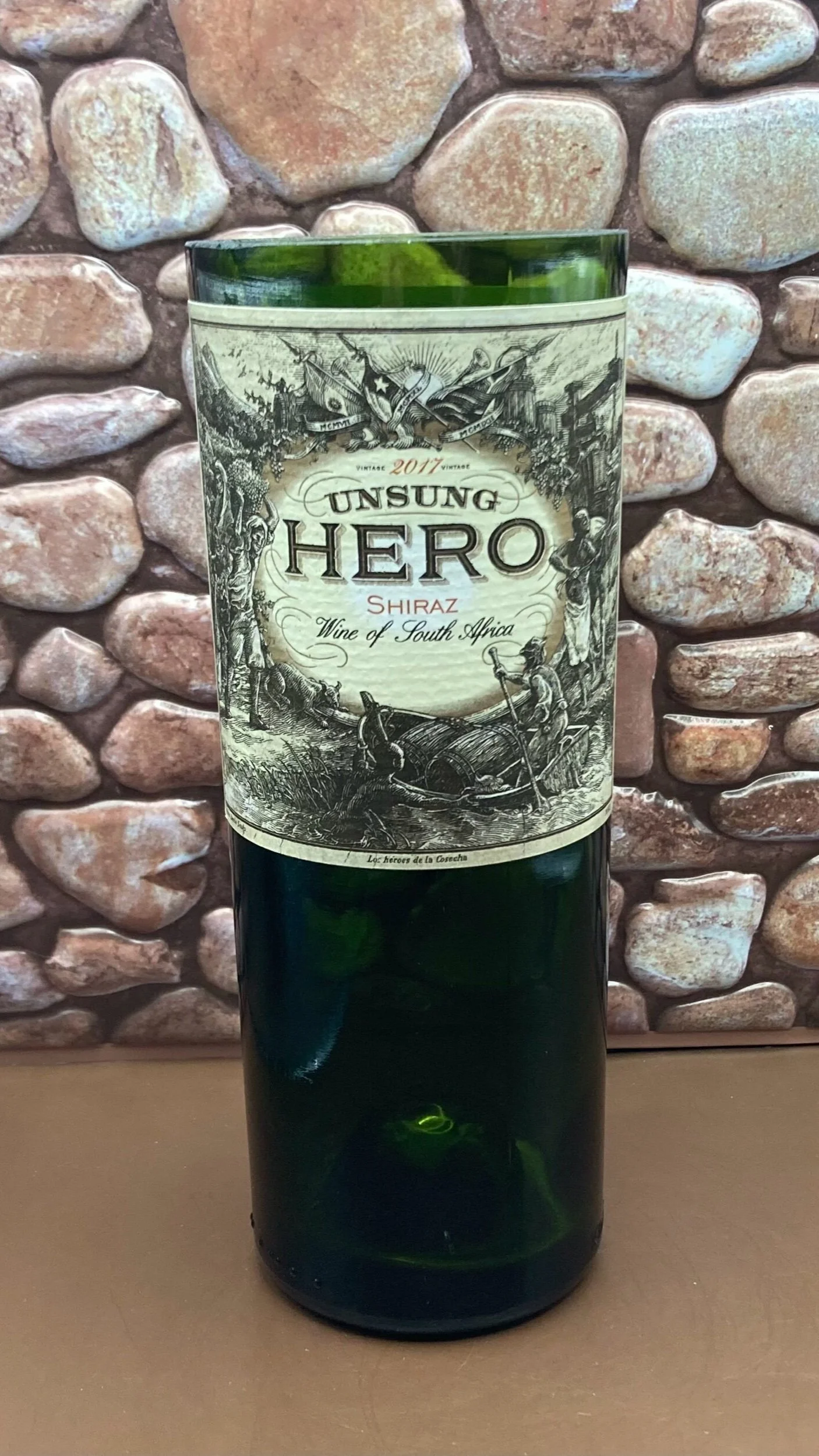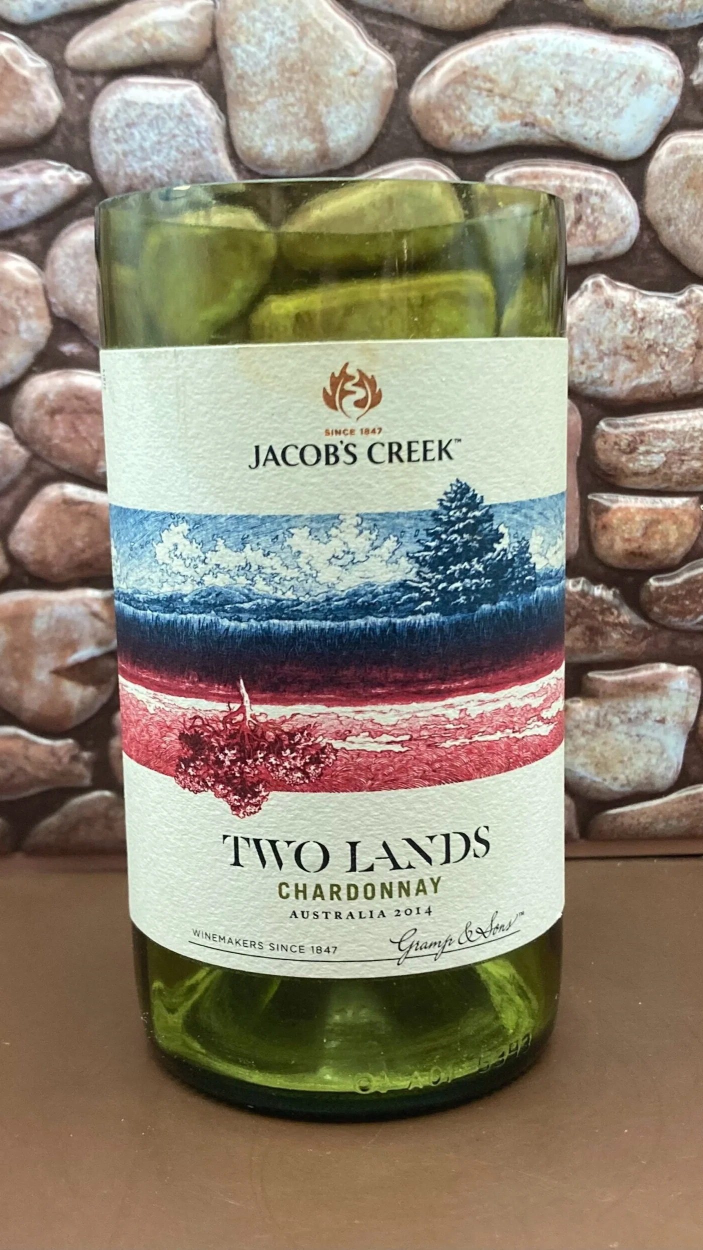 Wish Flower Upcycled wine bottle candle. Made with palm wax and a wood wick. The Palm Tree wax gives it a distinct look the wood wick makes it crackle. Natural fragrance oils.